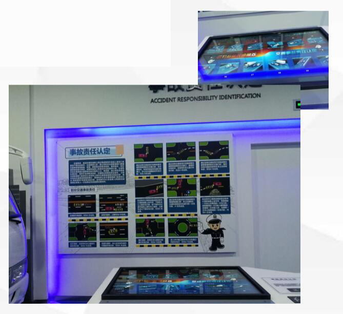 通過圖片展覽墻和觸摸一體機(jī)來展現(xiàn)事故責(zé)任認(rèn)定的基本知識,讓體驗者了解經(jīng)常會遇到的車禍的責(zé)任認(rèn)定,通過這樣的學(xué)習(xí),讓體驗者在以后發(fā)生事故時懂得如何維護(hù)自身權(quán)益。