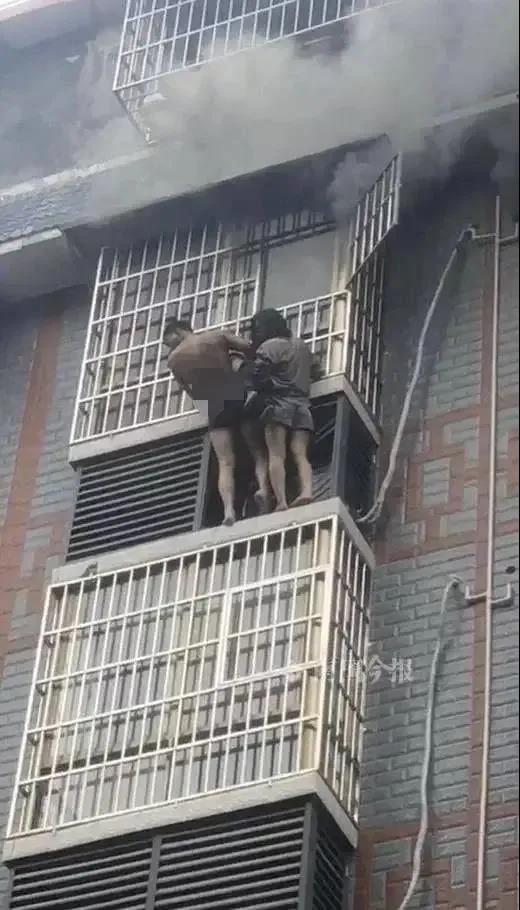 從防盜網(wǎng)的逃生窗爬出窗臺(tái)外