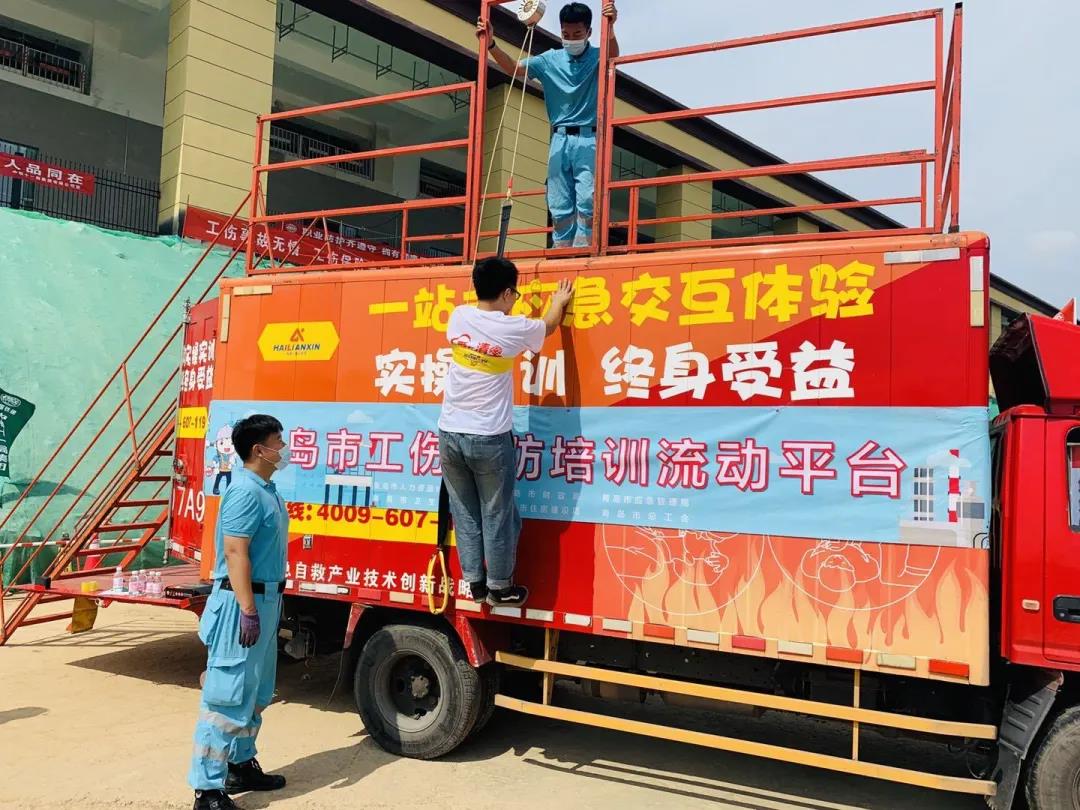 7月29日上午,由市人力資源社會(huì)保障局、市衛(wèi)生和健康委員會(huì)、市住房和城鄉(xiāng)建設(shè)局、嶗山區(qū)人力資源社會(huì)保障局聯(lián)合主辦的“愛在清塵”——青島市工傷預(yù)防集中宣傳暨塵肺病防治專場活動(dòng)在中鐵十一局集團(tuán)有限公司的建設(shè)工地現(xiàn)場舉行,這也是青島市今年工傷預(yù)防集中宣傳活動(dòng)的首場活動(dòng)?;顒?dòng)現(xiàn)場,在市人社局指導(dǎo)下,由山東海麗應(yīng)急安全培訓(xùn)中心創(chuàng)造性打造的“青島市工傷預(yù)防培訓(xùn)移動(dòng)平臺”建筑工地安全體驗(yàn)項(xiàng)目引起了企業(yè)和工人的高度關(guān)注。