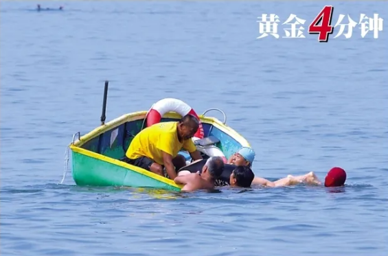 “岸上第一時間急救的目的在于迅速恢復(fù)嚴(yán)重溺水者的呼吸和心跳。急救及時,方法正確,有時可使幾乎無望的溺水者轉(zhuǎn)危為安,但若耽誤了上岸后的最佳急救時機(jī),則可能會使整個救生工作前功盡棄。”