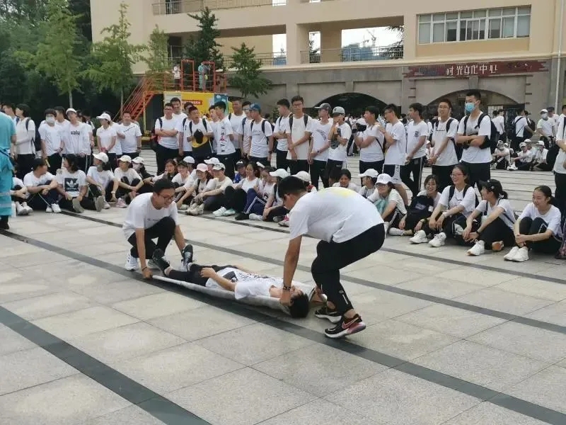 紙上得來終覺淺,絕知此事要躬行。第二個環(huán)節(jié),同學們便來到了三元廣場,分成了六個小組,分別進行了不同專項的實操訓練,包括高層樓宇緩降、電子模擬滅火;逃生帳篷搭建訓練、防踩踏事故培訓;抗震知識學習及抗震平臺體驗;外傷處置;結繩技能學習及傷員轉運演練;心肺復蘇訓練及氣道異物梗阻應急處理學習。