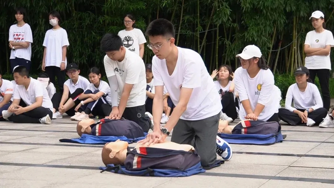在心肺復蘇訓練及氣道異物梗阻應急處理學習環(huán)節(jié),老師利用模擬假人,按照教學步驟,教學生掌握心肺復蘇具體操作流程,通過實際的操作學習心肺復蘇,讓學生了解和認識醫(yī)療應急方法,學會基礎應急自救技能。同學們認真模仿老師動作,雙手緊扣按壓在模擬假人胸口,做的有模有樣,提高了自身應對突發(fā)事件的能力。