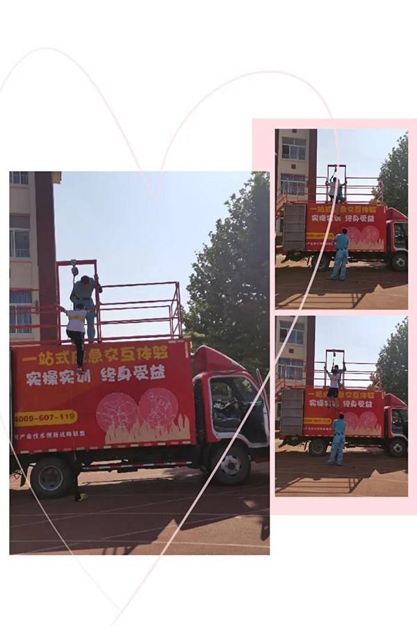 在這里,學(xué)生們首先來(lái)到了高樓逃生體驗(yàn)區(qū)。體驗(yàn)中心的老師進(jìn)行動(dòng)作示范——講解老師把安全帶放到腋下,身體后傾,雙手輕推墻壁,雙腿自然并攏,模擬從三層樓高度進(jìn)行輕松逃生。孩子們看后躍躍欲試,更有膽大的同學(xué)親自上陣,親身體驗(yàn)。