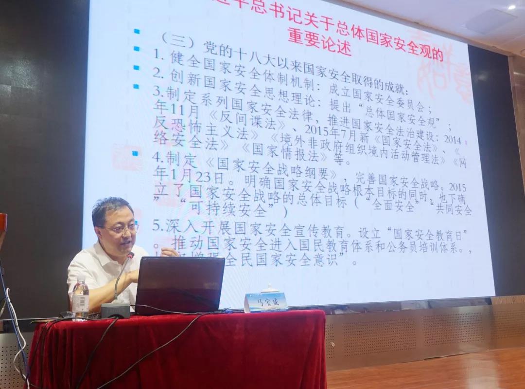 簽約儀式后,馬寶成教授以《堅持總體國家安全觀全面推進新時代應(yīng)急管理體系介紹》為題作安全應(yīng)急管理報告。