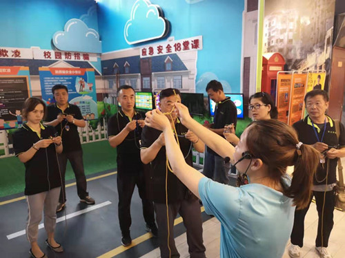 從地震體驗(yàn)館區(qū)出來(lái),工會(huì)的工作人員無(wú)不感到心有余悸。來(lái)到校園、家庭安全常識(shí)培訓(xùn)區(qū),現(xiàn)場(chǎng)應(yīng)急培訓(xùn)講師向大家演示了安全繩鎖的系法以及傷者心肺復(fù)蘇的方法,工作人員個(gè)個(gè)學(xué)的認(rèn)真,一絲不茍的進(jìn)行演練,基本的自救方式掌握在手