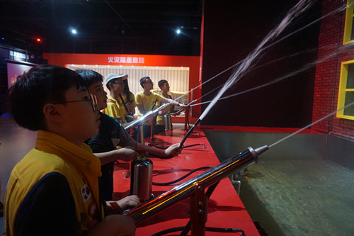 稍后便是消防體驗(yàn)培訓(xùn)區(qū)。講解人員通過廚房火災(zāi)自救,119模擬,滅火模擬,帶領(lǐng)大家一起學(xué)習(xí)交通安全標(biāo)示,正確使用滅火器,在災(zāi)難來臨時(shí),真正能夠正確和妥善處理。