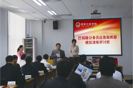 ![]() 2013年5月,董事長張旭明為國家行政學(xué)院廳局級公務(wù)員進行安全應(yīng)急知識培訓(xùn)。 |